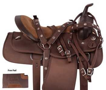 ブラウンテキサススターウエスタンプレジャートレイル乗馬馬具セット快適なコーデュライングリッシュレースレザー合成サドル用